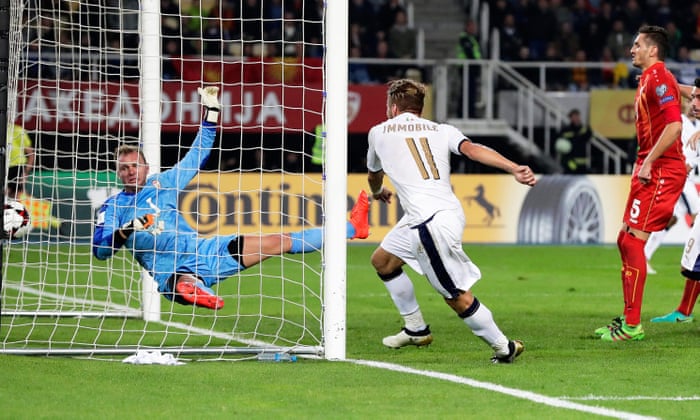 Ilija Nestorovski empató en el minuto 57 después de que Italia perdiera el balón en el centro del campo y Feran Hasani golpeó nuevamente para los anfitriones dos minutos más tarde después de otro error de Italia en el centro d el campo.Macedonia amenazaba con reclamar un tercero cuando Immobile anotó sorpresivamente en el minuto 76 y luego encabezó al ganador desde corta distancia en el segundo minuto del tiempo de descuento.